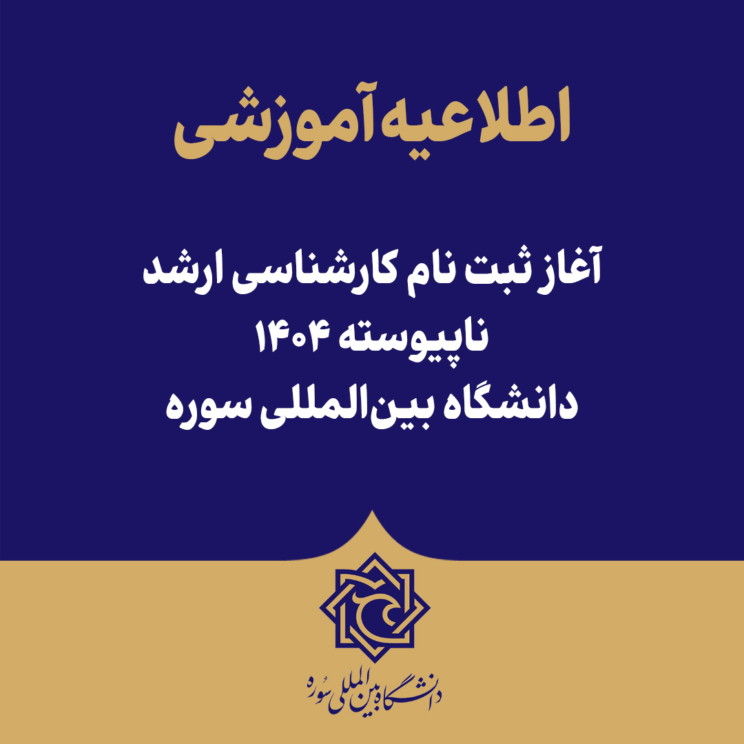 برنامه ثبت نام پذیرفته شدگان محترم کارشناسی ارشد ناپیوسته سال تحصیلی 1404 دانشگاه بینالمللی سوره اعلام شد.