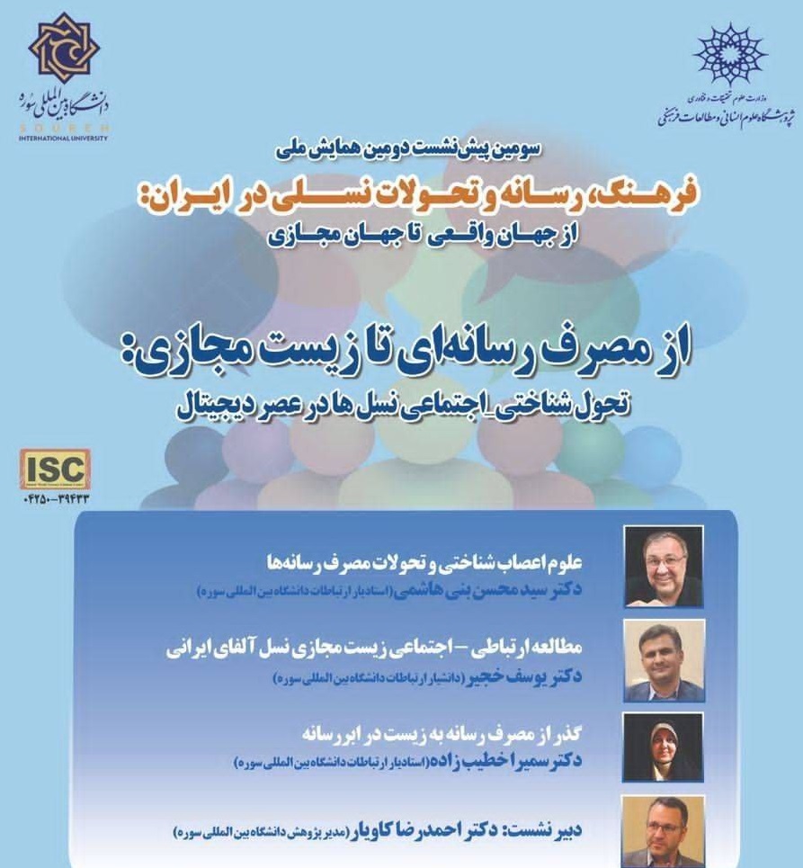سومین پیشنشست دومین همایش ملی «فرهنگ، رسانه و تحولات نسلی در ایران؛ از جهان واقعی تا جهان مجازی» در دانشکده فرهنگ و ارتباطات دانشگاه بینالمللی سوره برگزار شد.